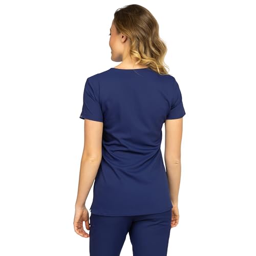 B-well Aurelia Kasacks Damen Pflege – Antibakterielle, Geruchsresistente, Bügelfreie medizinische Kleidung – Pflege Kasack mit V-Ausschnitt, Tasche & Schlaufe Blau S