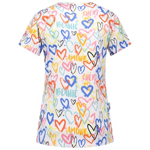 B-well Bambina Schlupfkasack Damen Kasack Kurzarm V-Ausschnitt Kasacks Damen Pflege Motiv (Farbige Herzen, M)