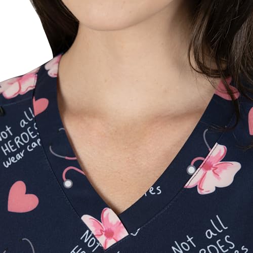 B-Well Isabella Damen Kasack mit Spandex, Motiv, Kurzarm und V-Ausschnitt (Helden, XXL)