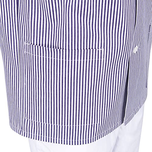 BEB Fleischerjacke, Fleischerhemd, Fleischerbluse, Metzgerjacke, Metzgerhemd, Metzger, Fleischer, Langarm, 100% Baumwolle (sanfor), deutsches Gewebe, Made in EU Marine Weiß Streifen 106 Tall